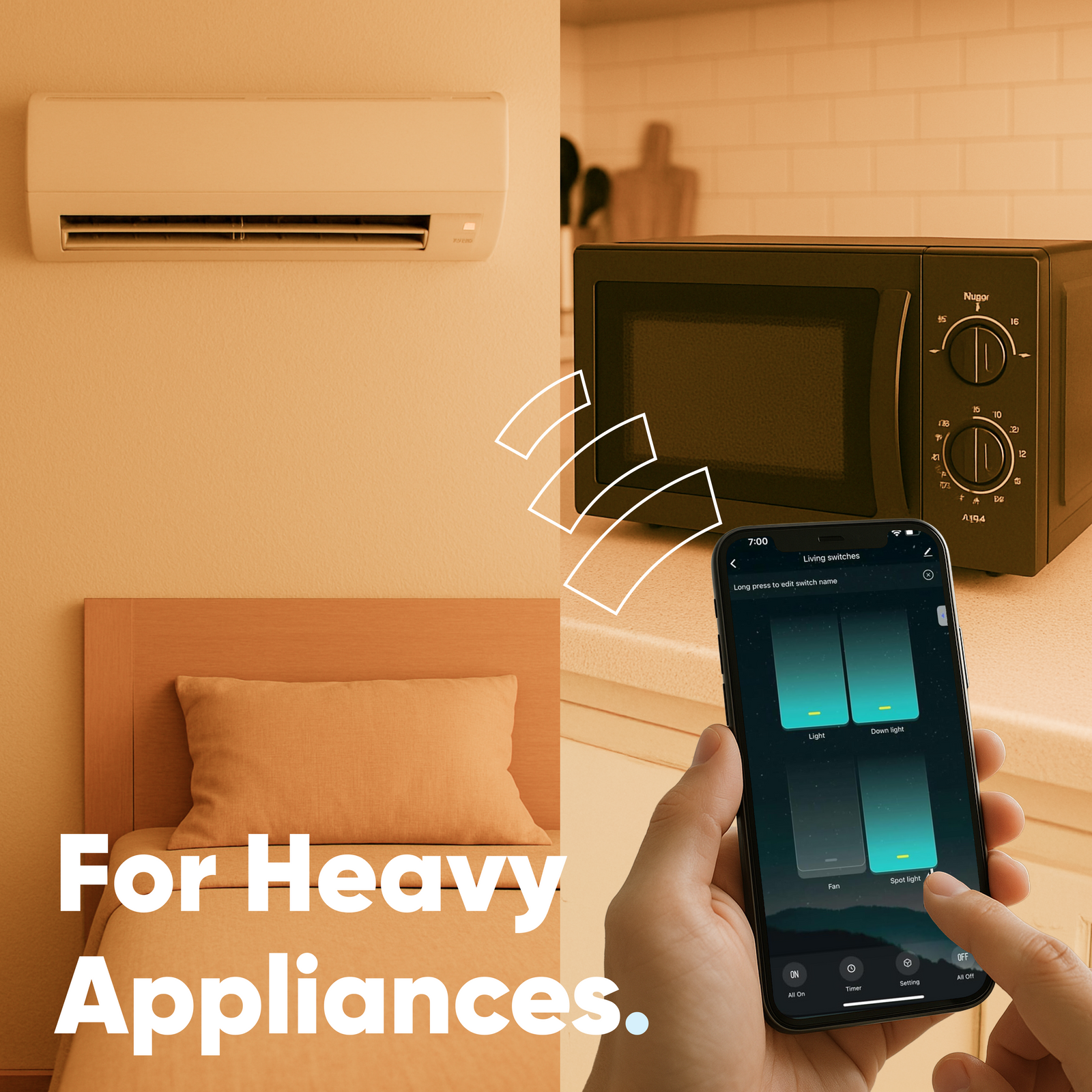 With dual connectivity (WiFi + Bluetooth), your smart home never skips a beat. You can operate your switches via the Smartlife app, voice assistants like Alexa and Google Assistant, or directly through touch. Use built-in timers and schedules to automate appliances for energy savings and peace of mind.
