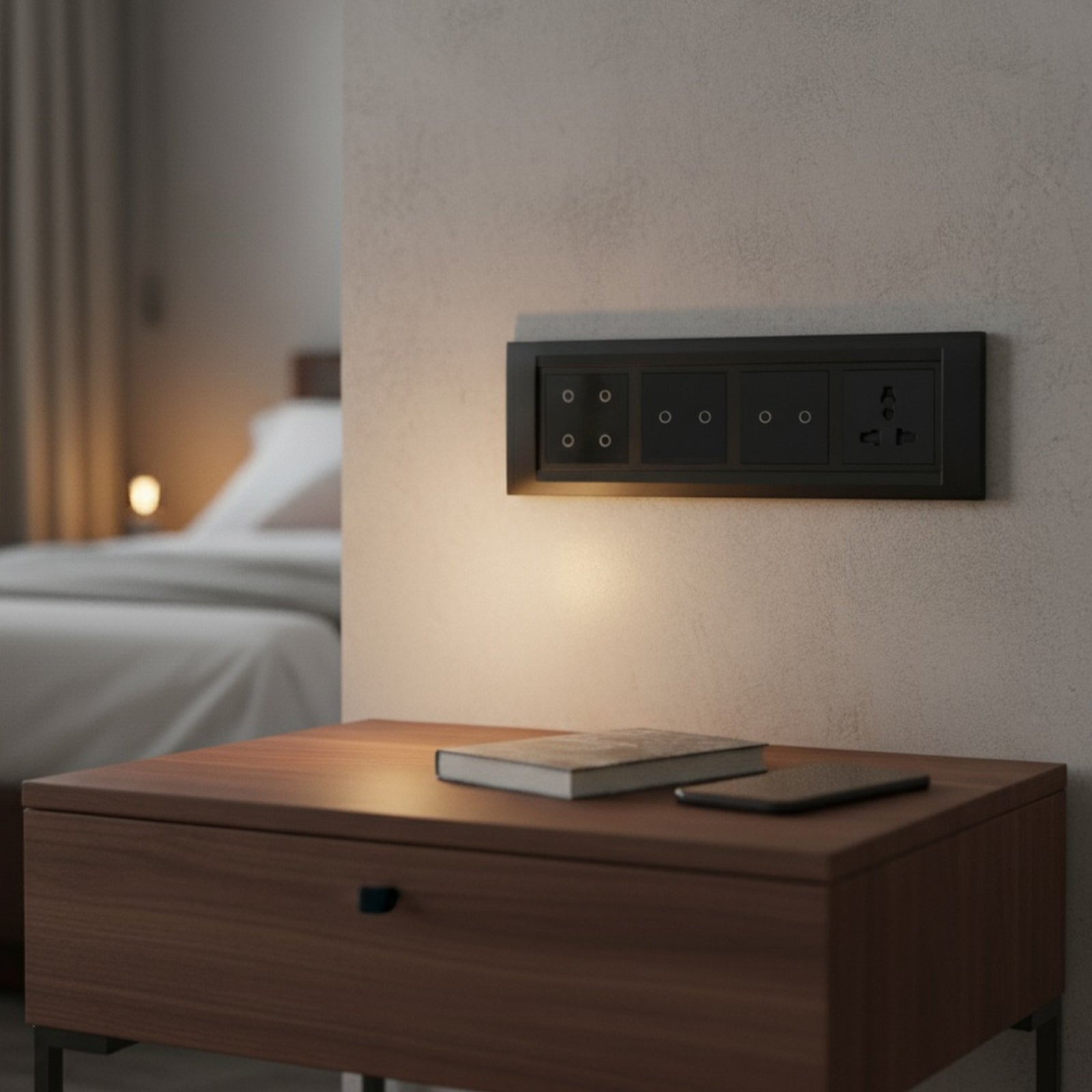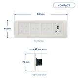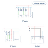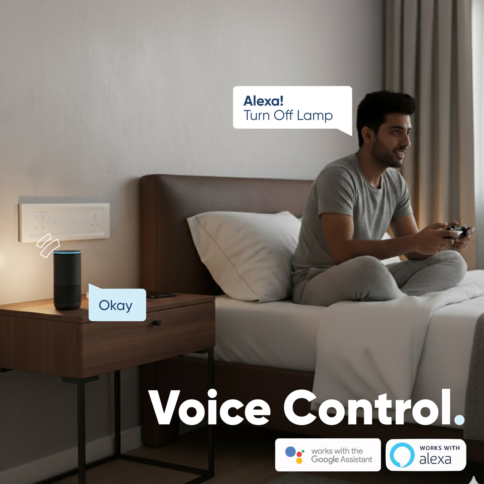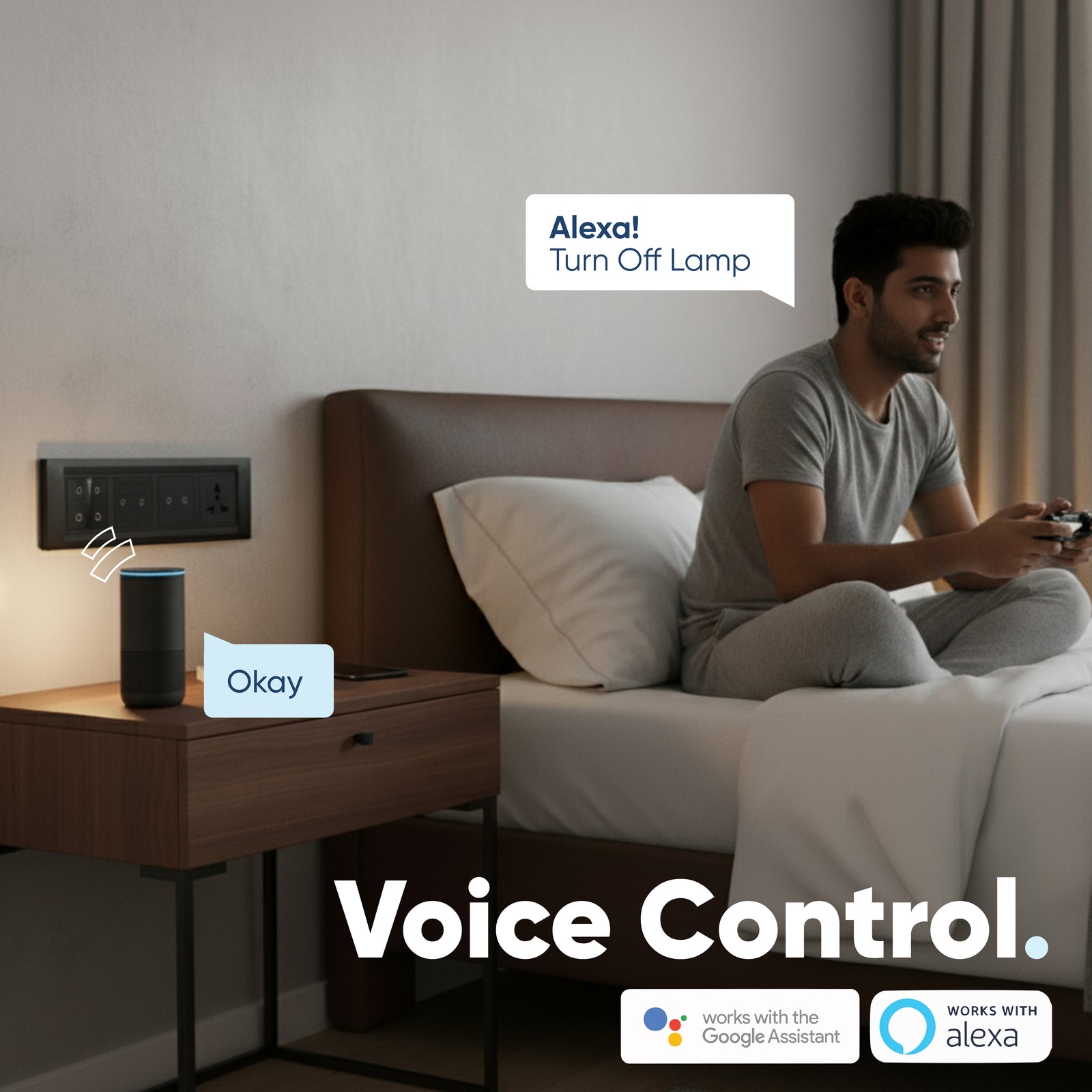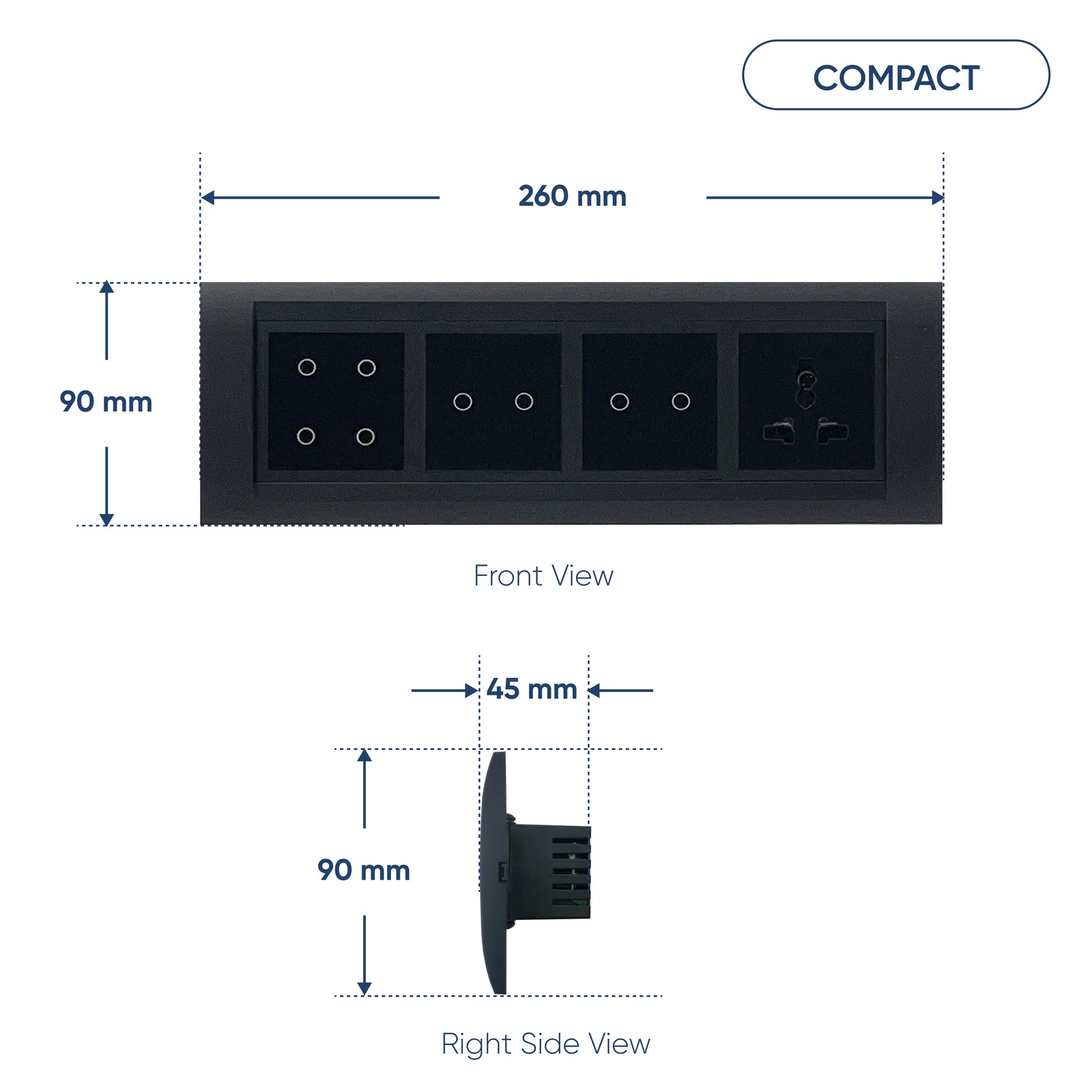 - Maximize Your 8-Module Space: Replace a traditional setup of 6 non-smart switches and 1 socket with a smart combo offering 4 smart modular touch switches (6A each), two nos of 2-touch modular smart switches (16A each) and 1 regular socket (6A) (total capacity 8 switches and 1 socket).