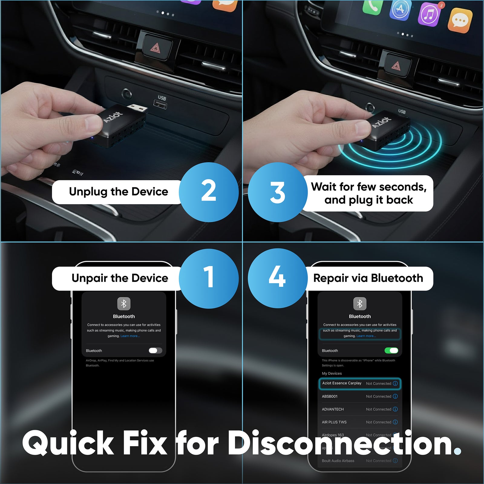 Equipped with Bluetooth connectivity, AZIOT Essence CarPlay ensures smooth, lag-free streaming, navigation, and voice commands via Siri or Google Assistant. It also supports OTA (Over-the-Air) software updates, so your adapter stays current with the latest features and improvements.