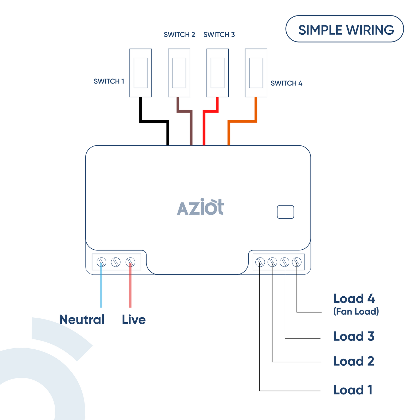 AZIOT 3+1 (Node) Fan Smart Switch - WiFi/Bluetooth Enabled
