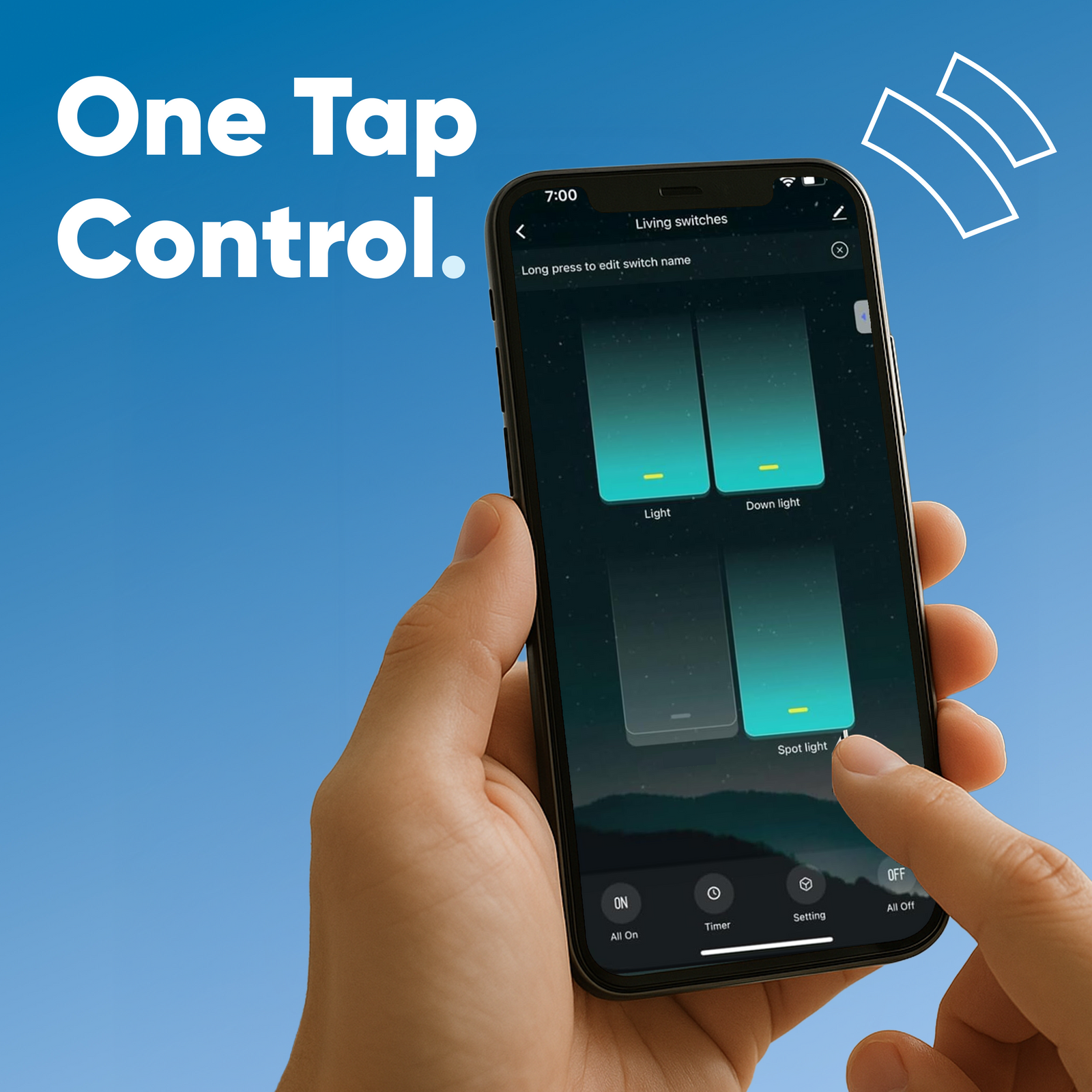 Introducing the AZIOT 4 Node Smart Switch Mini, a compact and versatile home automation solution proudly made in India. This smart switch utilizes both WiFi and Bluetooth communication for seamless connectivity, allowing you to control your electrical devices remotely with ease. Featuring a timer function, you can schedule operations to suit your daily routine, enhancing convenience and energy efficiency. Compatible with Google Home and Amazon Alexa, voice control adds another layer of convenience to your smart home setup. The 2-module size ensures compatibility with standard electrical fittings, making installation straightforward. Upgrade your home with the AZIOT 4 Node Smart Switch Mini and experience modern convenience at your fingertips.