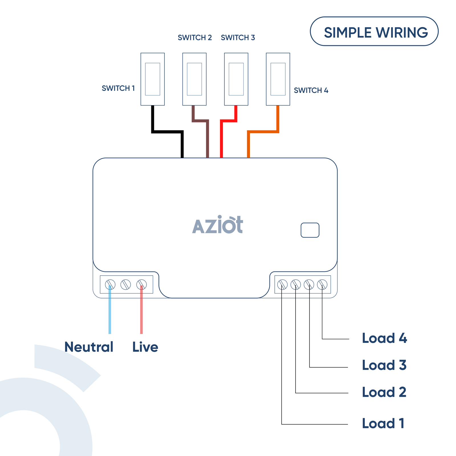 AZIOT 4 Node Smart Switch - WiFi/Bluetooth Enabled