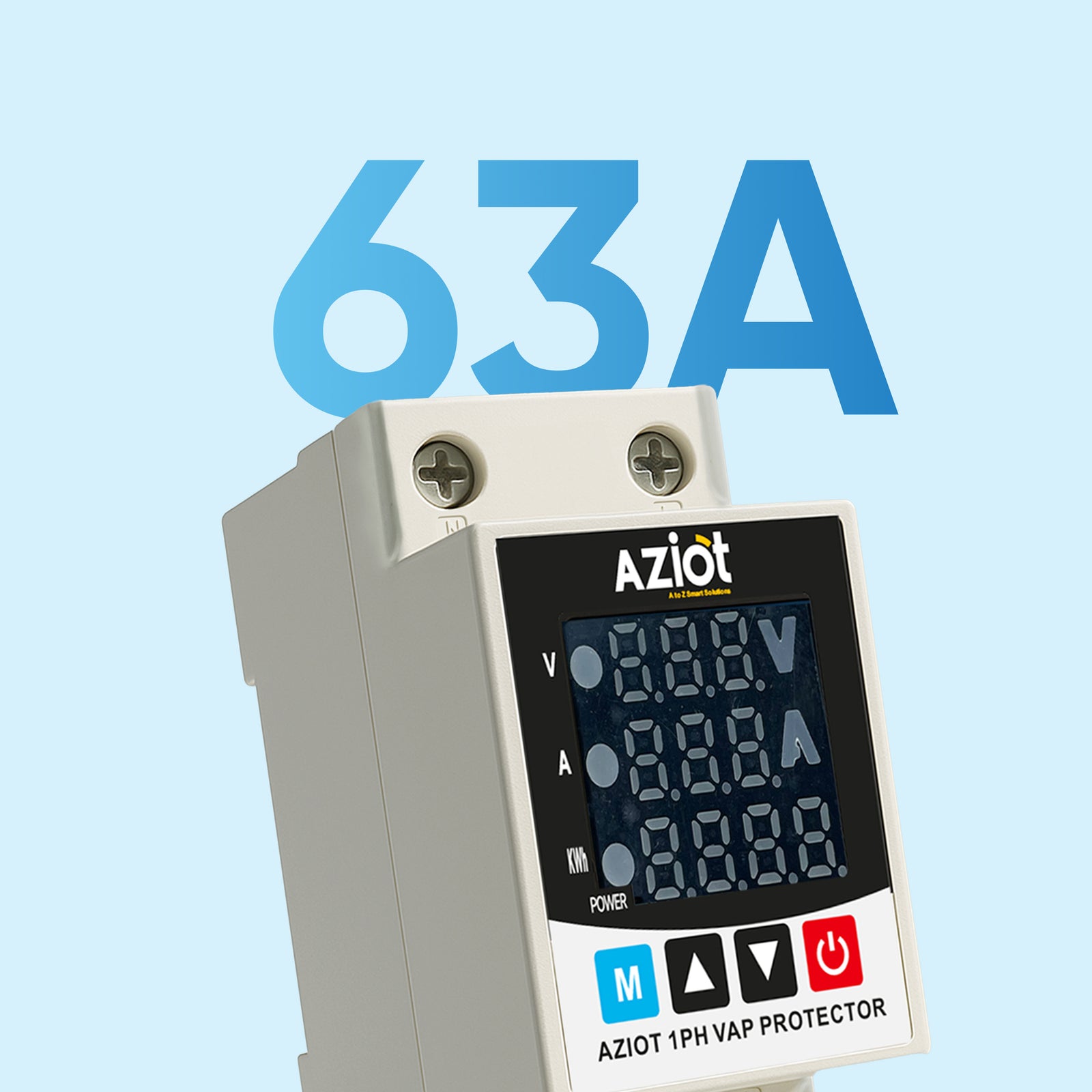 Aziot Adjustable Voltage & Current Protector | Single-Phase 230V | Voltage, Current and Power Display | 63A | Auto Reset & Delay Settings