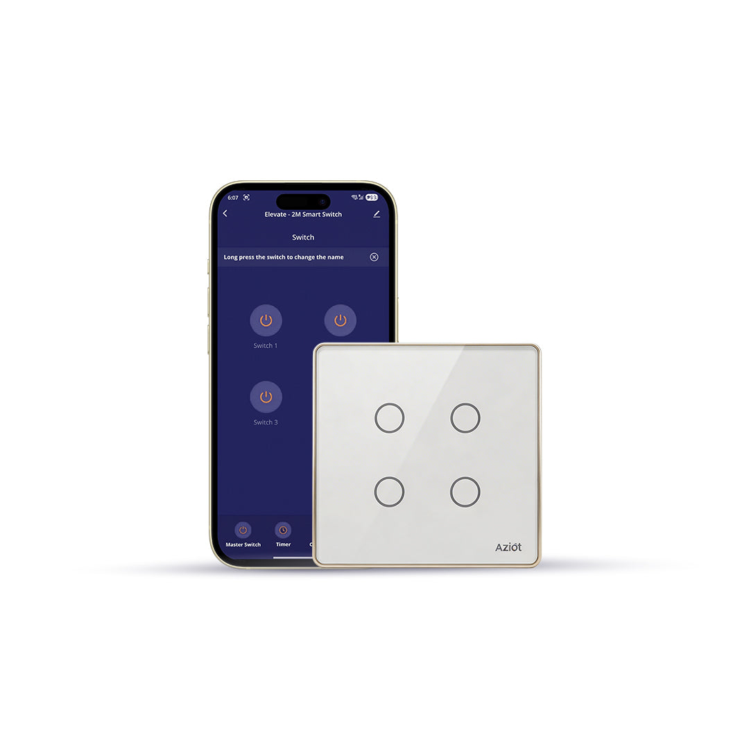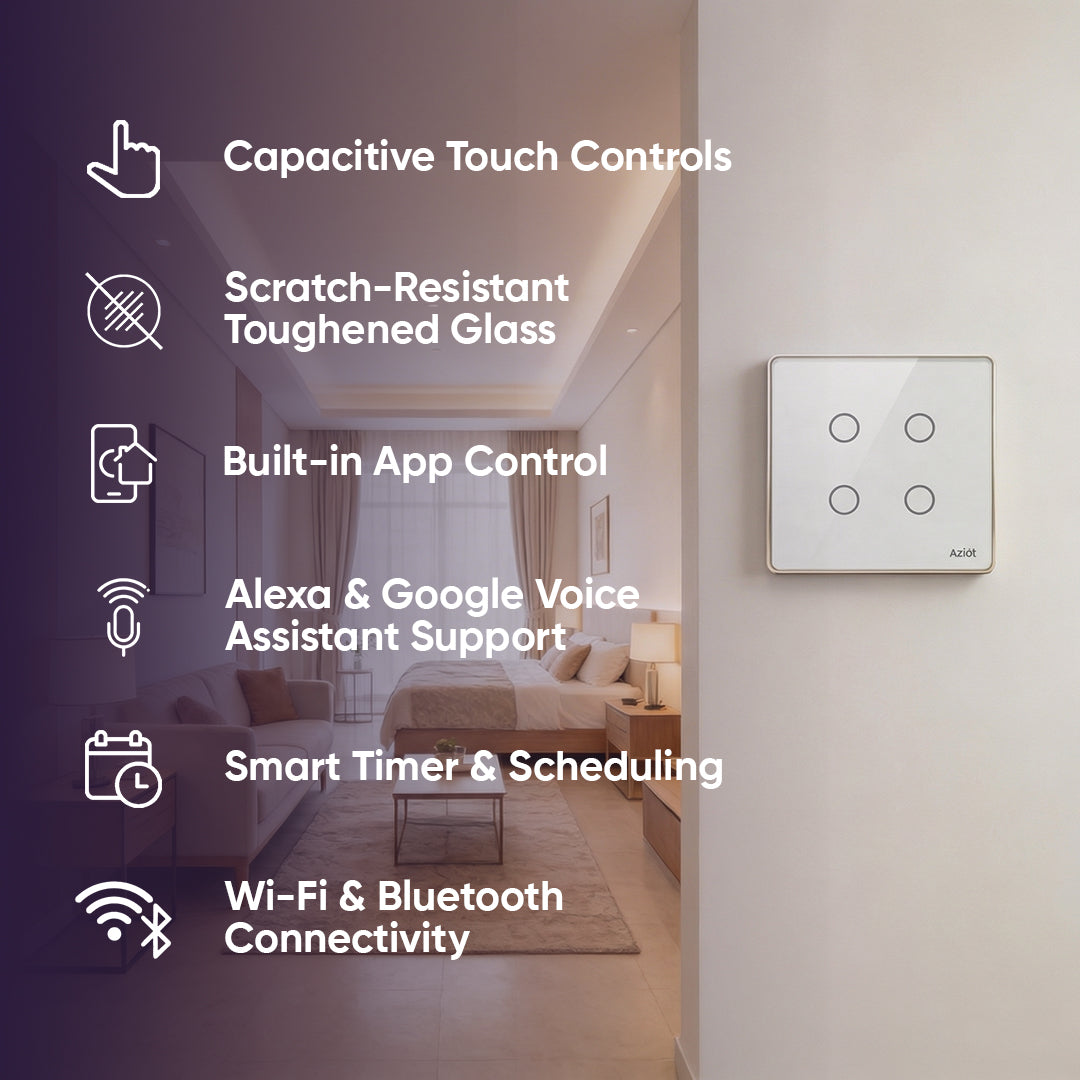 AZIOT Smart Premium Toughened Glass Touch Switch Panel | Elevate 2 Module 4 Switch | WiFi + BLE | No Hub Required | Works with Alexa, Google Assistant & Siri