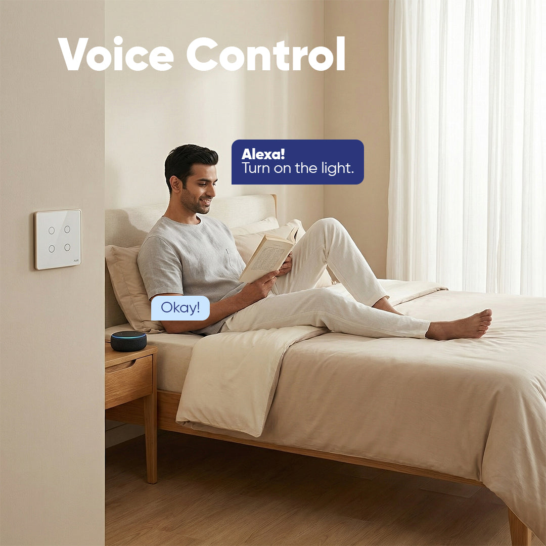 With built-in Wi-Fi and Bluetooth connectivity, you can control your lights from anywhere using your smartphone—no hub required. The switch panel also supports voice assistants like Alexa, Google Assistant, and Siri, allowing you to operate your devices hands-free.