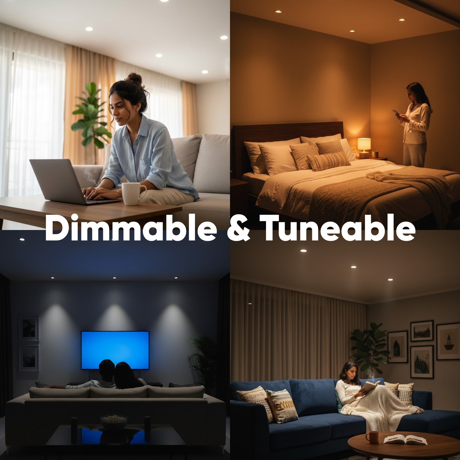 - Modern Design: 12W trimless LED COB light for false ceilings, BIS certified, tuneable (2000K-6500K), and dimmable (0%-100%). Perfect for living rooms, bedrooms, and offices.